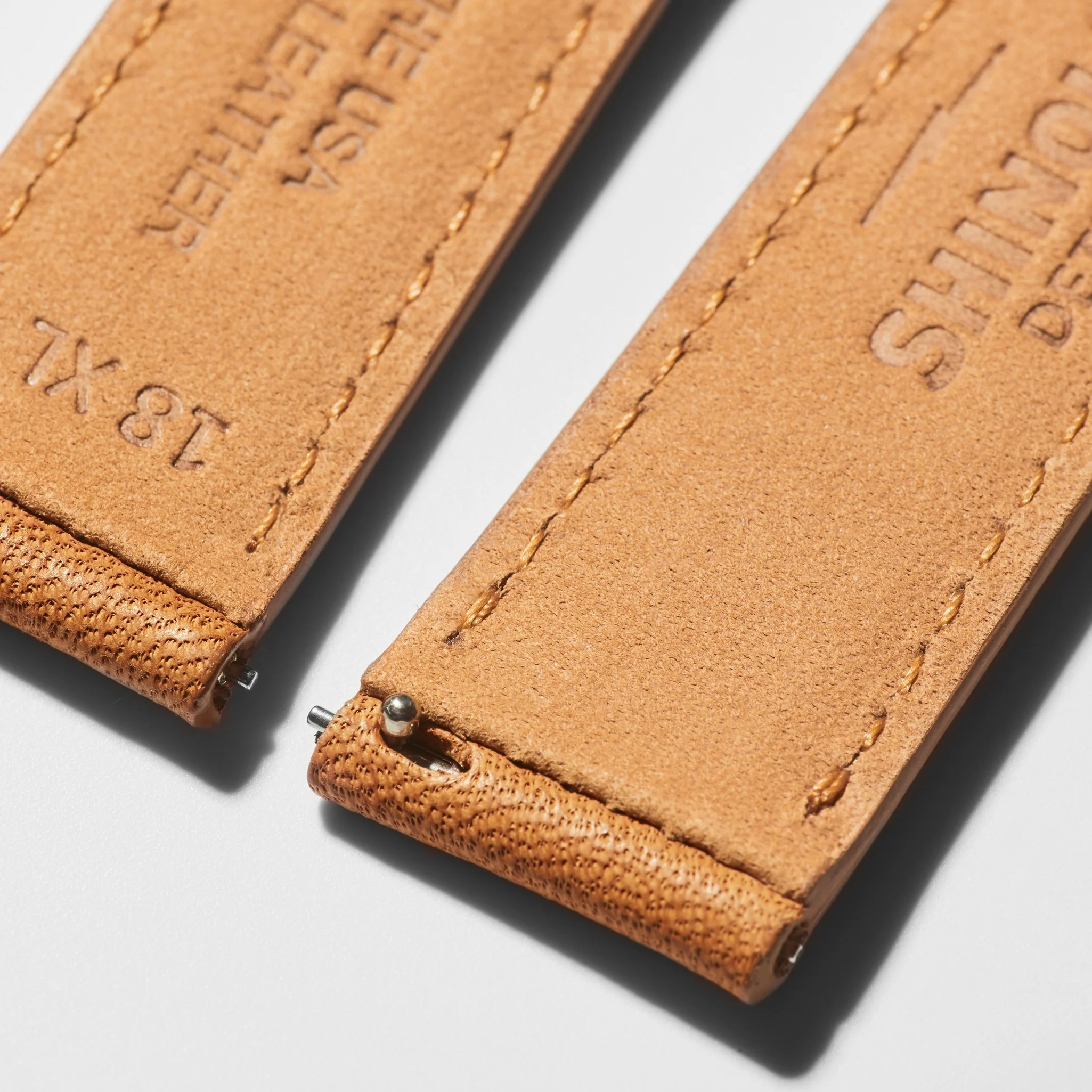 Classic leather watch strap featuring quick release spring bars, designed with style that thinks in decades not seasons. Hand sewn in the United States from premium leather.