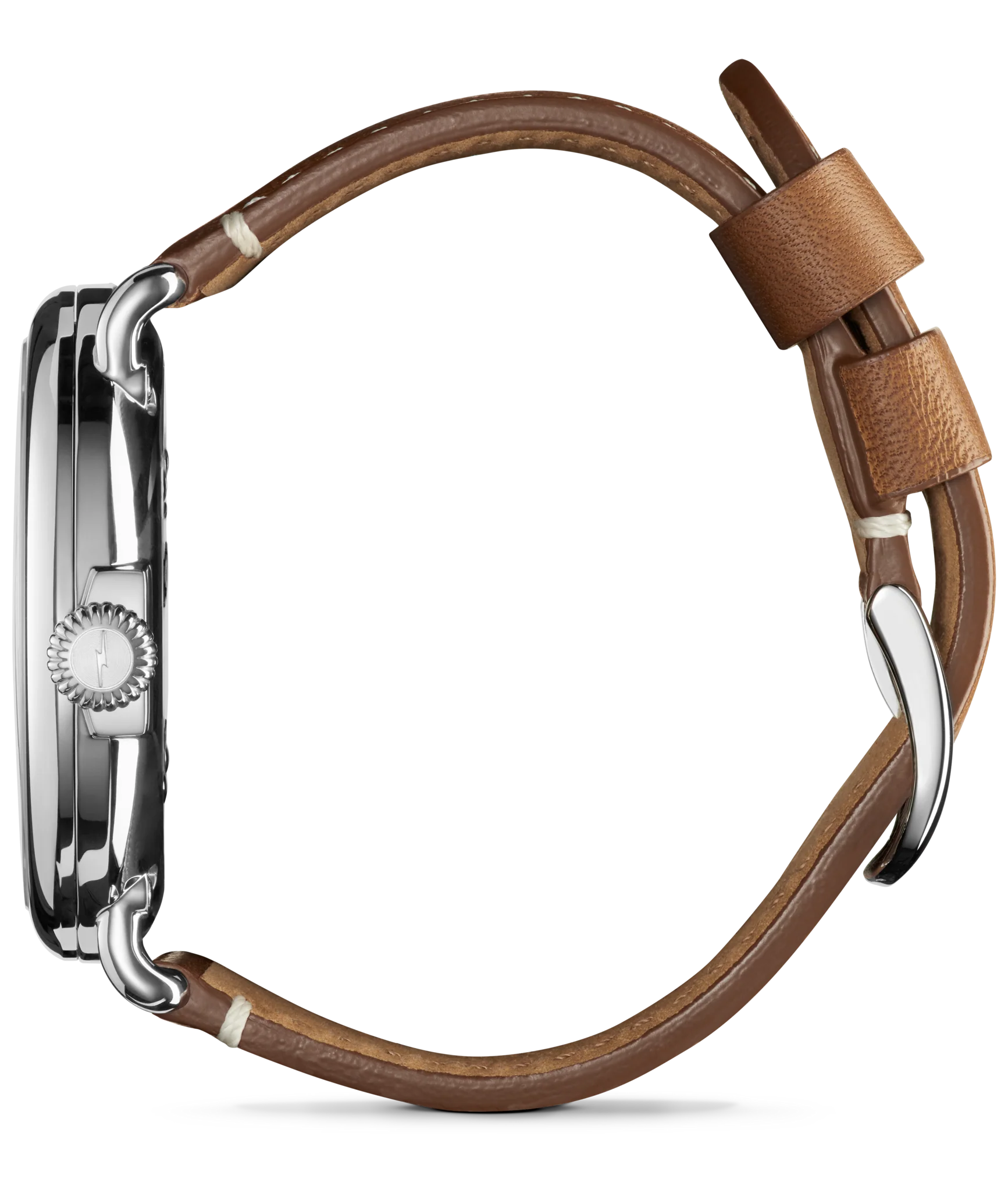 Our flagship style, the Runwell, is simple and sophisticated watch crafted for decades of wear. This obsessively engineered watch is built to last and named accordingly. Two hands and sub dial are driven by Shinola's Argonite 1069 high-accuracy quartz movement. The bold green dial is punctuated by applied Arabic numerals in white. The solid stainless steel case features classic pumpkin crown with double-domed sapphire crystal to protect the watch from scratches throughout years of wear. Go ahead, get attached. Engraving available for personal touch.
